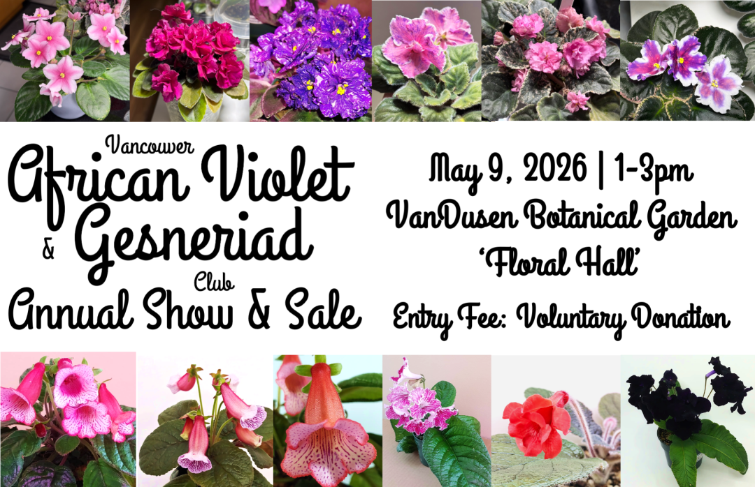It’s time for the Vancouver African Violet & Gesneriad Club’s Annual Show & Sale!
